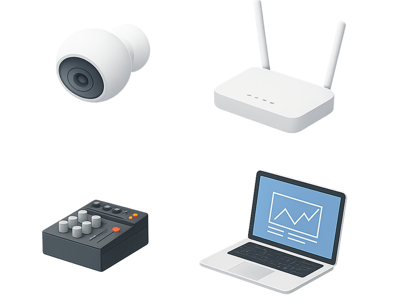 Implementamos sistemas de audio ambiente para cafeterías, locales y espacios de atención al público. Instalamos parlantes, mezcladores y cableado, dejando el sistema listo para música, avisos o micrófono.